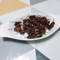 5.skewer the meat onto toothpicks, Put oil in the pot, when the oil is hot, add the meat skewers and fry over medium heat