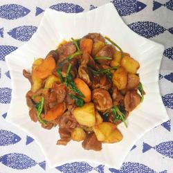 1. Prepare materials, potatoes and carrots, wash and set aside.Cut chicken gizzards into pieces and blanch.
