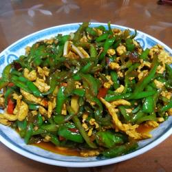 7.Pour in the shredded green peppers and add appropriate amount of salt