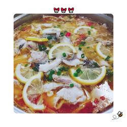 7.Put the prepared fish into boiling hot water, fish it out and spread it on the On top, sprinkle with chives, and the most important thing is to put lemon slices.This delicious lemon tomato fish is ready to eat.