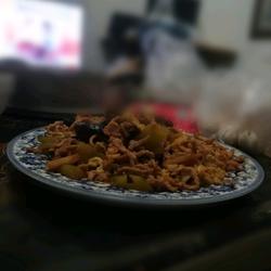 7.Add cucumber slices and stir-fry for half a minute.Add salt, chicken powder, sesame oil, and sugar.