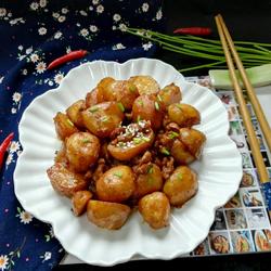 8.Place on a plate and garnish with white sesame seeds and chopped green onion