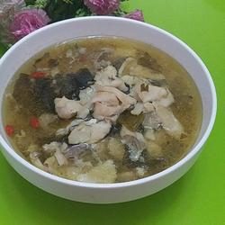 6. Take another pot, add water, ginger slices, salt, bring to a boil, slowly add fish fillets, and cook the fish fillets After it's cooked, add the sauerkraut and cook briefly, then it's ready to serve