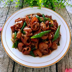 6.Pour appropriate amount of oil into the pot, pour in the cut large intestine and stir-fry