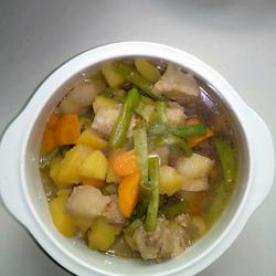 2.Change to a large pot, add the prepared potatoes, green beans, and carrots, and stew for 20 Minutes add garlic.