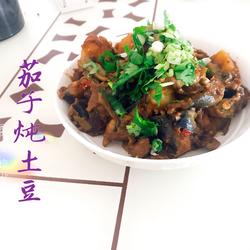 8.Add in when the soup finally becomes less.salt.Before serving, add some coriander and green onions, and after serving, add the remaining coriander and green onions.The Northeastern dish of potatoes and eggplant stew is ready~