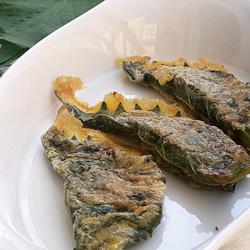 6. Dip the perilla leaf dumplings into the egg mixture