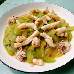 19.Collect the juice and put it on the plate, the fried squid with bitter melon is completed