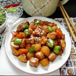 9.Finally add green pepper and stir-fry until cooked and ready to serve