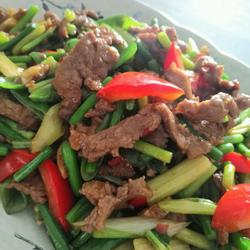 7. After the vegetables change color, pour in the beef tenderloin.Do not fry the vegetables for a long time, otherwise they will become watery.After the water comes out, the beef tenderloin is added, and the stir-fried dish is not delicious.