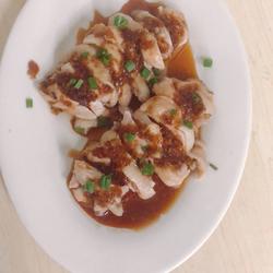 9. Cut the chicken legs, pour onion oil sauce, and sprinkle with chopped green onion.Enjoy!