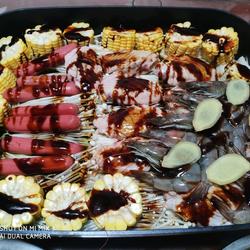 Green vegetable base, favorite vegetables, meat, meatballs ( ) | Homemade stew sauce (Consume 3 tablespoons of oil, 1 tablespoon of bean paste, 1 tablespoon of minced pepper sauce, 1 tablespoon of black pepper sauce, and a little flavored rice ) |