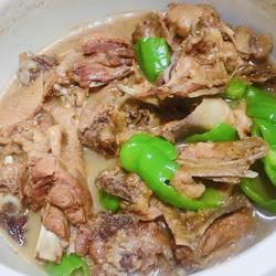 4. After simmering, add a little sugar and chicken essence to enhance the freshness, and pour Add green peppers and heat to reduce the juice.