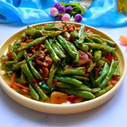 5.Add in the beans and fry until the skin becomes wrinkled and remove.