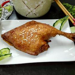 8. Arrange on a plate and garnish with white sesame seeds and cucumber, take a picture of the finished product, and put it together The delicious crispy braised duck legs are ready.