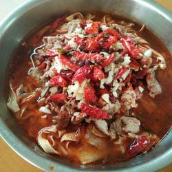 5. Pour in the soup, then add dried chili peppers, Garlic, chili powder, Sichuan peppercorns, pour hot oil, complete
