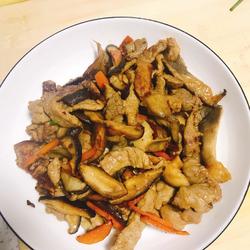 4. Heat the oil in the pan, add the chopped mushrooms and stir-fry Stir-fry the shredded carrots for 2-3 minutes to release the water, add the fried shredded pork, add dark soy sauce, add appropriate amount of salt, stir-fry for one minute, then simmer over high heat for one minute, and finally remove it~