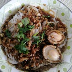 3. Lift the pot Heat oil, add minced garlic, sauté until fragrant and pour the oil over vermicelli and abalone