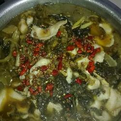 8. Remember, after the fish is put into the pot, do not stir it anymore and press it with a spatula.Put the fish meat into water and pour it with boiling hot soup until the fish meat changes color.