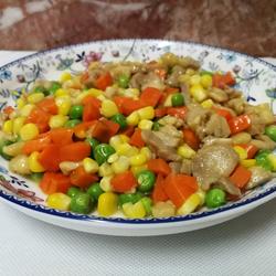 2. Add water to the pot, put it down, carrots, peas, corn kernels, and cook ten minutes.
