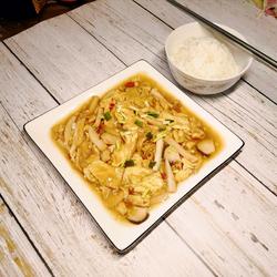 20.Pour the gravy into the pot and stir-fry for half a minute to reduce the juice and turn off the heat (leave a little juice)
