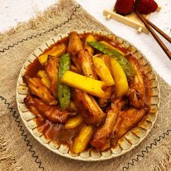 12. Add the pineapple and snow peas, stir-fry evenly until the snow peas are raw.