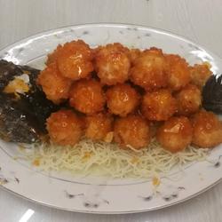 9. Arrange the fried fish balls on a plate and make sweet and sour sauce.