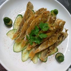 2.Heat oil in a pan until the oil temperature is 70% hot.Add red fish and fry for about a minute until golden brown.