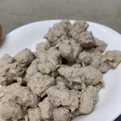 4. After grinding the minced meat into fine pieces, add 5 grams of starch.20ml water, 2g salt, stir in one direction.