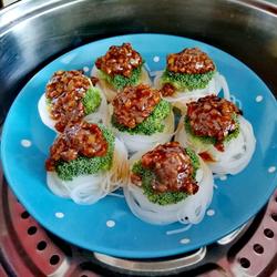 15. Very delicious and beautiful, the steamed broccoli with golden garlic vermicelli is completed.