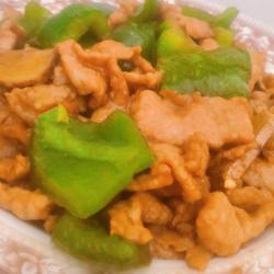 5. Add a small amount of oil to the pot and put it in Add the green pepper and stir-fry for 7 minutes.Add the fried spare lean meat and stir-fry for a few times.Then season, add a little soy sauce, consume 1 tsp of water, stir-fry over high heat for 1 minute, and remove from the pan.