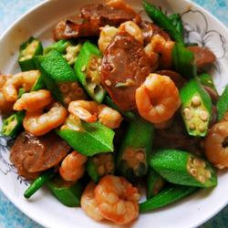 1.Cut the okra, sausage, and minced garlic.Wash the shrimps