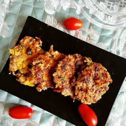 1.Chop the meat into small dices, add the blanched diced mushrooms, and all other ingredients.Stir vigorously clockwise.Pay attention to the soy sauce and salt.The combination must be appropriate, otherwise it will be salty.Let it rest for 15 minutes, stir again, and take out Flatten an appropriate amount of meat filling, put mozzarella cheese in the middle, and make a ball.Heat oil in a pan, put the meat ball in and press it into a flat shape