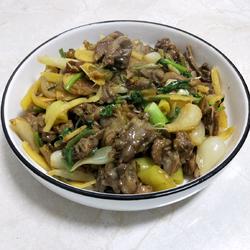 4.In another pan, add a few slices of ginger and 6 garlic cloves, stir-fry over medium heat until fragrant, pour in the blanched duck meat, stir-fry until the oil is released, then pour in the mountain Stir-fry the sauce mixed with yellow peel, sour plum, light soy sauce, oil, salt and sugar for 3 minutes (you can add less salt and sugar, salty lemon, light soy sauce and oil are all salty)