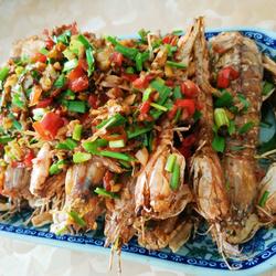 6.Leave a little fried in the pot Pour the garlic, ginger, and chili into the shrimp oil, add a little salt, and stir-fry until fragrant.Add the shrimp and stir-fry evenly.No high heat is required here.
