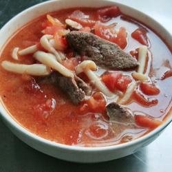 7.After cooking the jade mushrooms for five minutes, add the marinated pork liver.When the liver changes color, turn off the heat and take it out of the pot