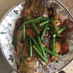 3. Add the ingredients to the pan and fry in oil, then add the crucian carp.When turning over, sprinkle salt on both sides of the fish and fry it thoroughly.Then add light soy sauce and cooking wine, bring to a boil, then add cold water and simmer.Add sugar, add dried mushrooms, and a few slices of lemon to remove the fishy smell.