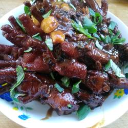 8. After 20 minutes on medium heat, take it out and you will have a portion of chicken feet with rich sauce.Remove from the pan.Sprinkle some chopped green onion or coriander will do.