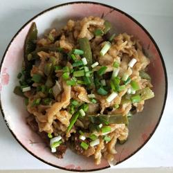 9. Wait until the water dries up and stir the noodles and ingredients Take out the pan evenly and add chopped green onion