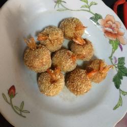 13. Insert the tail into the shrimp balls and fry them until golden and take them out.The deliciousness is ready