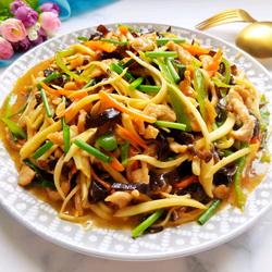10. Add wild rice, shredded carrots and shredded fungus and stir-fry.