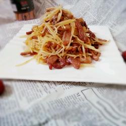 4.Pour in the shredded potatoes and stir-fry evenly.
