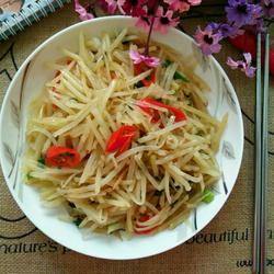6.After the ingredients are stir-fried, add the shredded potatoes and stir-fry