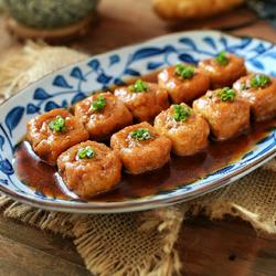11.Wait for the soup in the pot When it is reduced, take the Yong Tau Foo out and place it on a plate