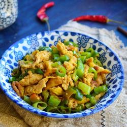 1.Cut the pepper into sections, beat the eggs, and chop the green onion