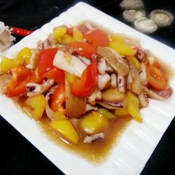 10. A delicious fried squid with vegetables and peppers will be ready.