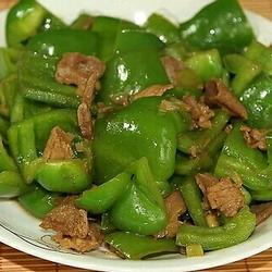 5.Pour in the green pepper, add an appropriate amount of salt to taste, and stir-fry for about 2 minutes