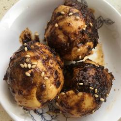 2.Put a small amount of oil in the pot, fry the eggs until they are slightly burnt and pour them in Garlic chili sauce, let the eggs roll around~...~ Roll around, dip the sauce evenly, use medium to low heat to prevent the pot from being stuck