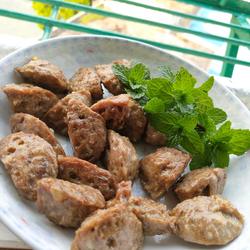 3.Heat a pot over medium heat and add corn oil until 70% hot.Add beef tendon balls and fry them