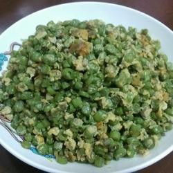 7.Add egg liquid and stir-fry quickly until solidified.It is best to coat the beans evenly Add the egg liquid and use a spatula to spread the large pieces of eggs.Add salt and pepper before serving, stir-fry evenly and serve.